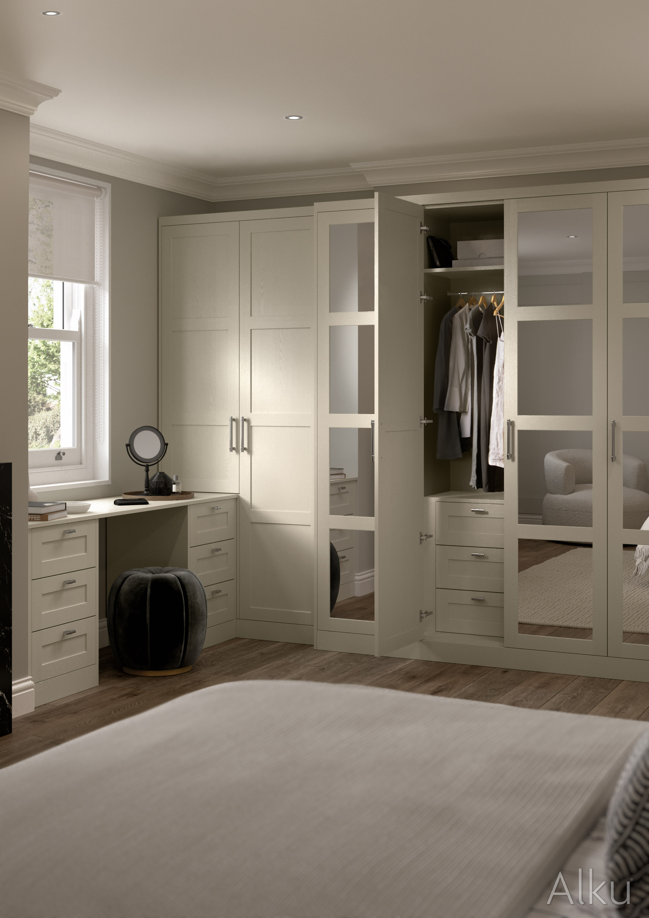 The stunning simplicity of the Aspen Shaker-style door is accentuated by its narrow frame for a decidedly modern look. This door is accompanied by a host of accessories to expand your design options to create a bedroom that meets all your expectations.